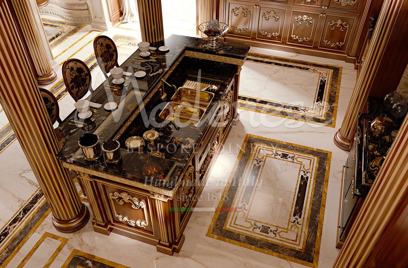 Концепция строится на трех измеримых параметрах. Первый — долговечность материалов. Мрамор Calacatta Oro добывается слоями толщиной 25-30 см на глубине 400 метров в карьерах Тосканы, его годовая добыча не превышает 8000 тонн. Второй — временные затраты на производство. Резная панель из массива ореха площадью 3 квадратных метра требует 180-240 часов ручной работы одного мастера. Третий — редкость техник. Маркетри с использованием 40 пород древесины выполняют 12 сертифицированных мастерских в Европе.