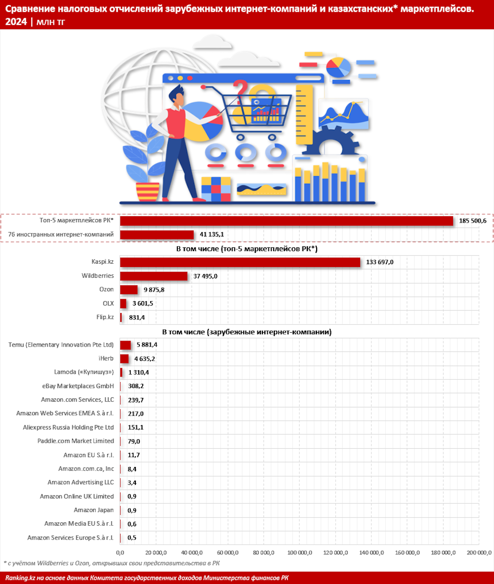 Таким образом, одна лишь Kaspi.kz внесла в казну сумму, в несколько раз превышающую совокупные налоги всех зарубежных интернет-компаний.