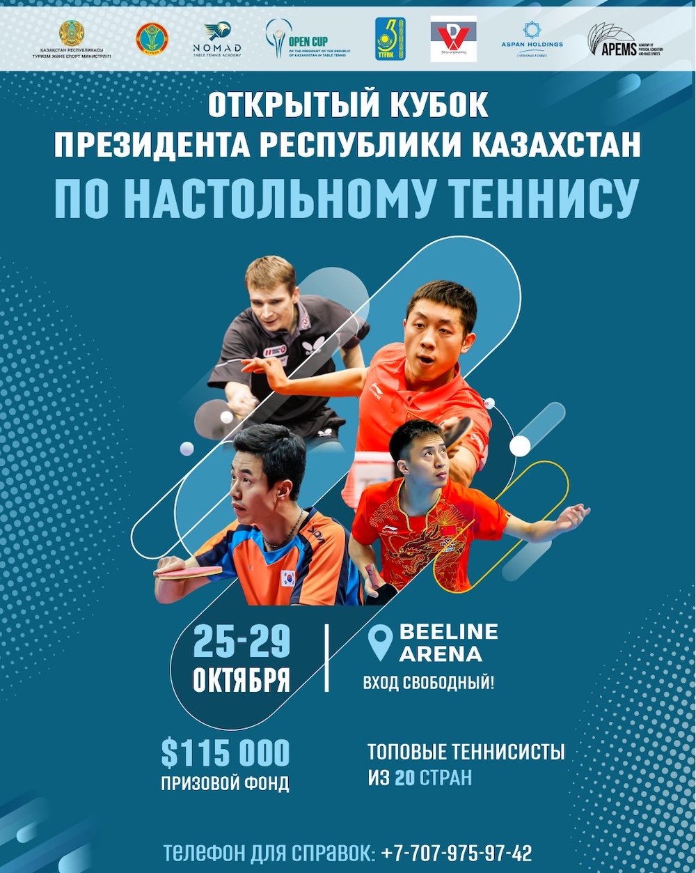 Организаторами турнира выступают Nomad Table Tennis Academy при поддержке Министерства туризма и спорта Республики Казахстан и Федерации настольного тенниса Казахстана.