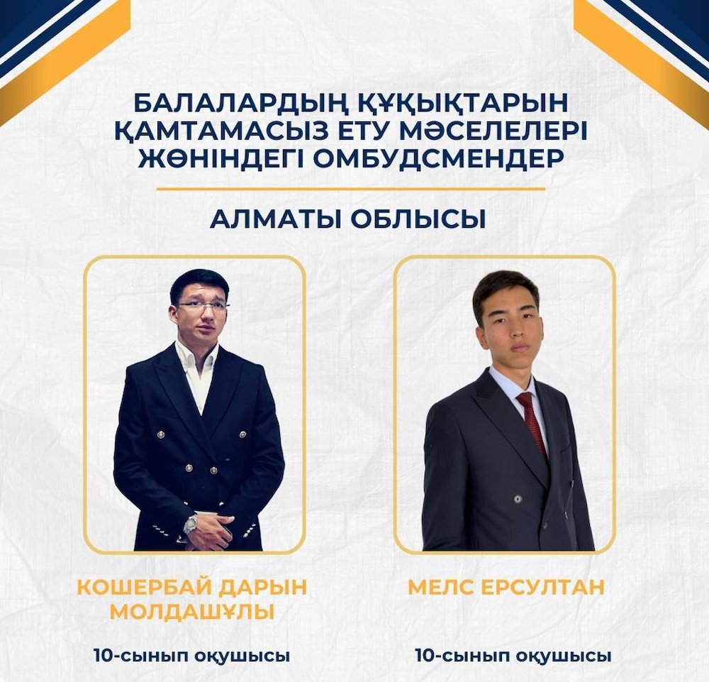 По результатам отбора в состав Республиканского совета вошли 40 юных правозащитников, которые будут представлять интересы и защищать права школьников во всех регионах Казахстана. Алматинскую область представляют Кошербай Дарын Молдашұлы и Мелс Ерсултан.