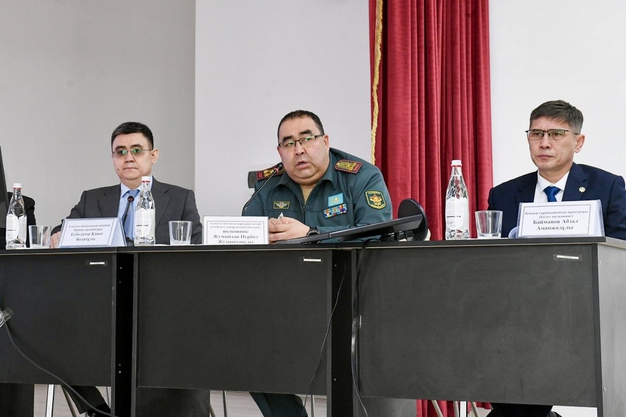 Мероприятие прошло под председательством первого заместителя акима Алматинской области - председателя областной призывной комиссии Каната Есболатова при участии начальника Департамента по делам обороны Алматинской области полковника Нурбола Жумашхана.