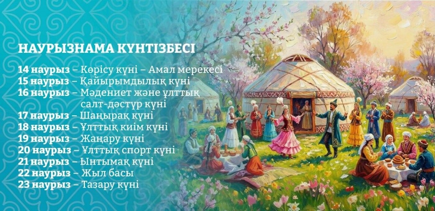 14-23 наурыз аралығында Қазақстанда жалпыұлттық Наурызнама онкүндігі өтеді. Наурыз мейрамын атап өтудің бұл форматы аз уақыт ішінде тарихи дәстүрлерді, мәдени іс-шараларды, қоғамдық бастамаларды ұштастырып, ел бірлігін нығайтуға бағытталған маңызды халықтық мерекеге айналды.