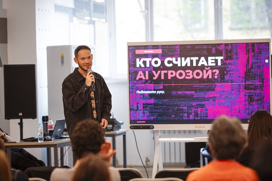 Завершающим событием дня стал воркшоп «AI в кино и медиа: инструмент или угроза профессии?». Спикеры Риз Есентаев и Ник Макфлай обсудили влияние искусственного интеллекта на индустрию и трансформацию навыков.